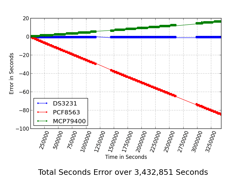A shorter test (300,000 seconds) was performed on the DS1307.  The complete analysis, KeepingTimegraphs and software was published in issue 7 and 8 of Raspberry Pi Geek magazine.